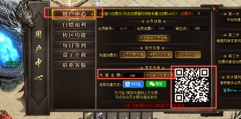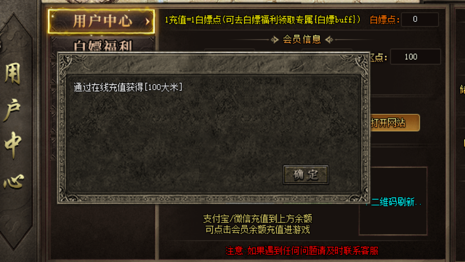 4、成功充值100获得游戏充值另送100白嫖点,可去【白嫖福利】激活白嫖buff