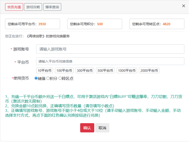 5.示例:若您角色总充值额为 500 元,则转区时可返还 500 转区点;(转区点可直接兑换游戏使用!!!)