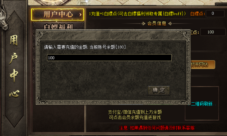 1、打开用户中心输入需要充值的金额,支付成功金额便到您会员账号