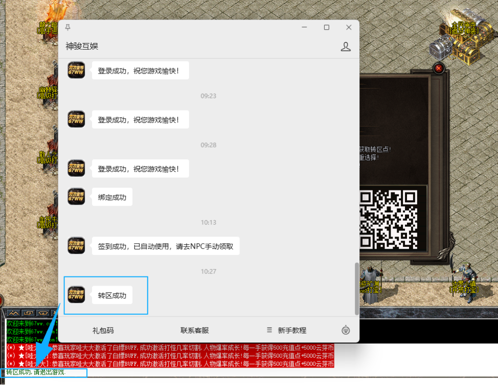 3、扫完公众号提示转区成功则转区完成账号封禁获得对应转区点